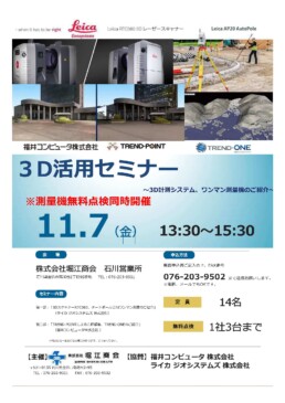『3D活用セミナー ~3D計測システム、ワンマン測量機のご紹介~ 』を開催します。
